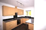 Well proportioned kitchen with built in oven and electric hob and stylish, black metro tiled splashback and uninterrupted views of the private back garden.