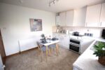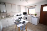 Feature large picture window in living room and generous dining kitchen with white goods, ceramic hob cooker, washing machine and fridge.