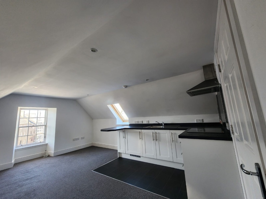 Top floor, modernised 1 bedroom unfurnished flat. The property consists of a large lounge/fitted kitchen with intergrated oven, hob, washing machine and fridge. Double bedroom and a bright modern bathroom with over bath electric shower. electric heating, secure entry system, resident parking to the rear of the property and plenty of storage throughout this is a property not to be missed.