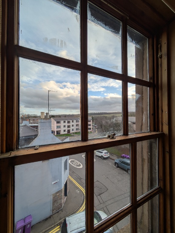 We are delighted to be able to offer this bright 3 bedroom, 2nd floor flat in a historic Brechin building, consisting of two double bedrooms, one with a walk in wardrobe and ensuite bathroom and a single bedroom that would also be ideal as a study. The property has a large living room with sanded wooden floorboards and an open fire, a spacious kitchen with room for dining and there is also a family bathroom.