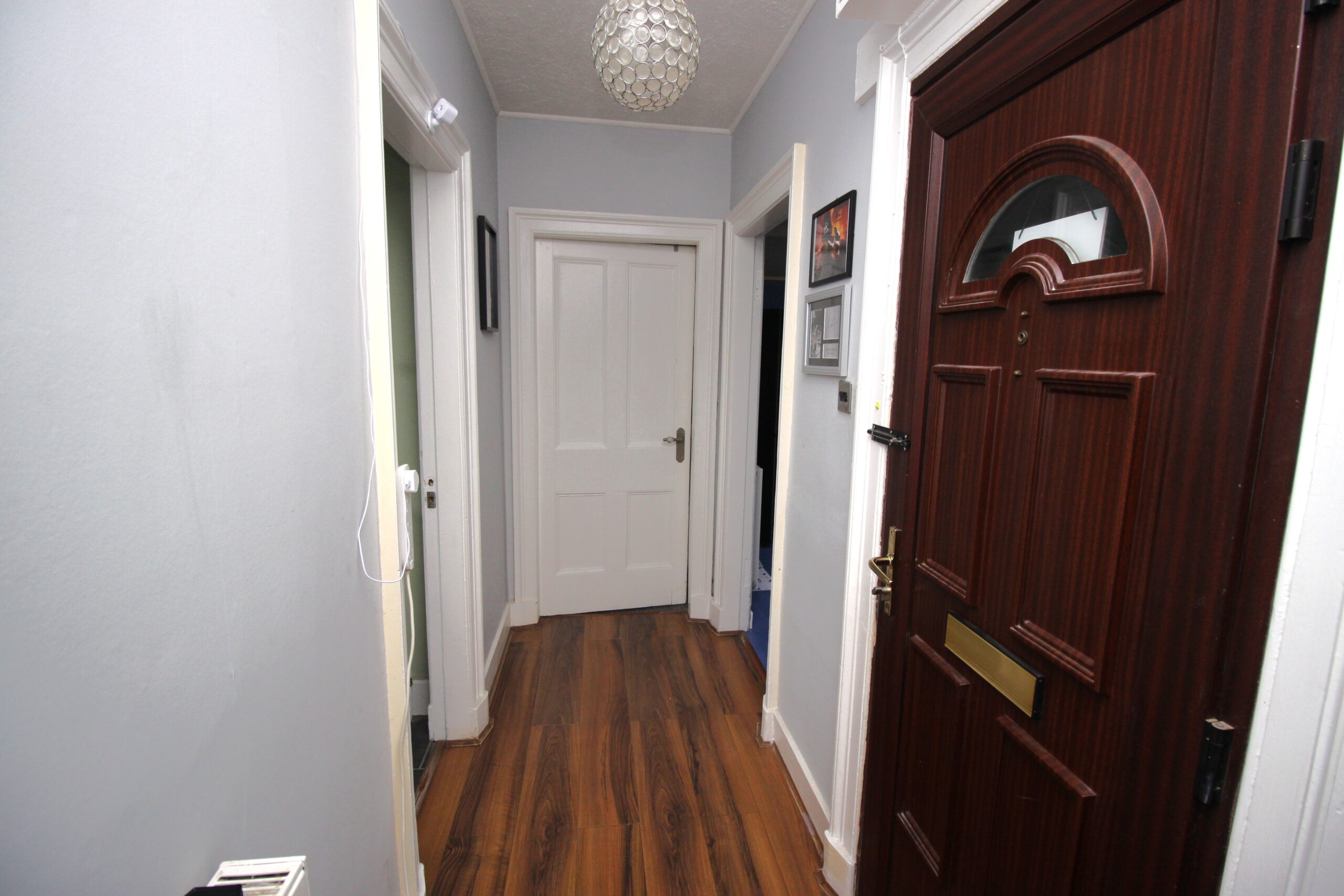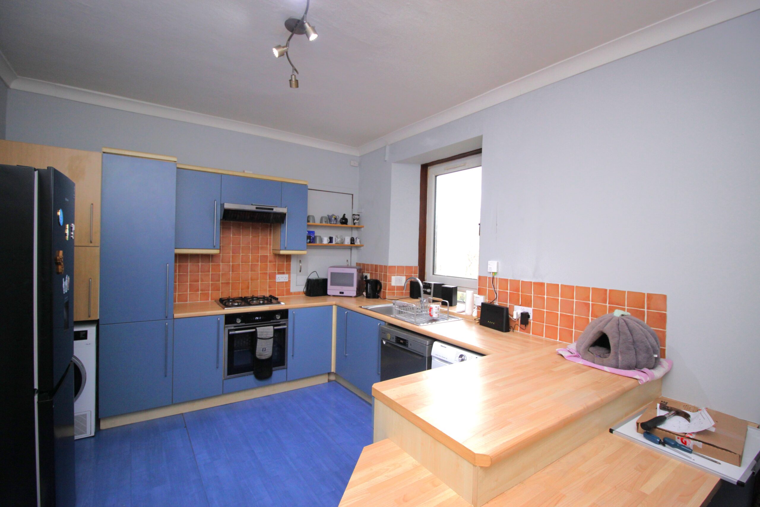 Entrance hallway which leads to a very spacious, modern, stylish kitchen with breakfast bar area and ample room for full size fridge freezer and other white goods.
