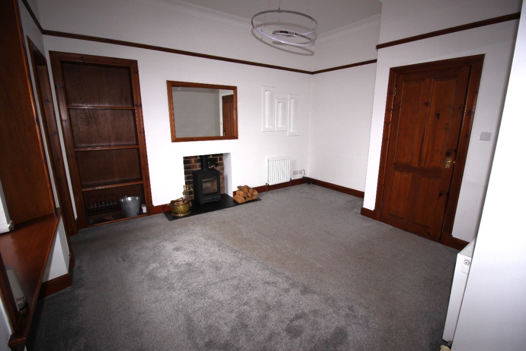 Generous lounge with feature wood burner. The property also comes with an enclosed rear garden with log storage area and garden shed.