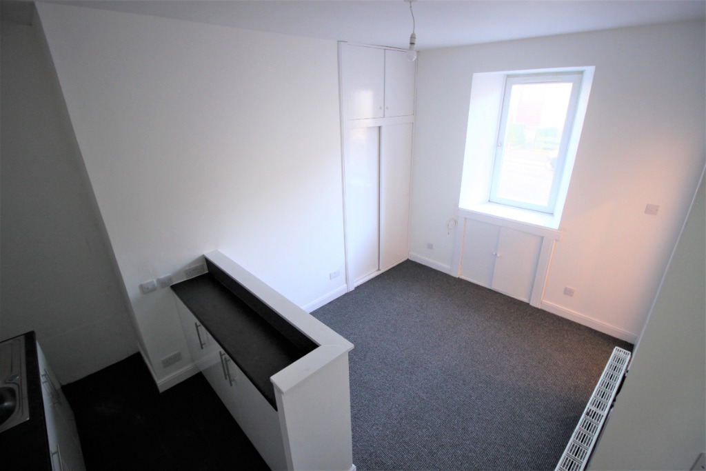 Beautifully presented 1 bedroom flat in the centre of Brechin. The flat spreads over two levels. Ground floor comprises a bathroom/utility and an open plan living room/kitchen. The first floor has a large bathroom with walk in shower as well as a large bedroom.